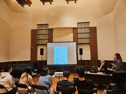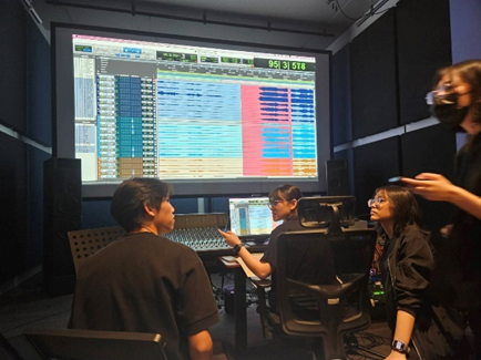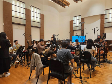 另外,李佳盈老師延續113-1學期「管絃樂法」及「電影配樂管絃配器法與管絃樂擬真技術之應用」兩門課程,於113-2學期開設「進階管絃樂法」及「進階電影配樂管絃配器法與管絃樂擬真技術之應用」課程,並於114年6月9日於本學程音創研製方舟辦理管絃樂實錄(Recording Session)。根據課程規劃,授課教師在學期末挑選10位同學的優秀作品,參與期末的管絃樂實錄。本次錄音是由北藝大音樂系優秀同學擔任樂手,透過管絃樂現場實際錄音,參與同學除了可以聽到自己的作品完整的被演奏出來之外,透過實際操作,獲得從音樂創作、樂譜準備到錄音現場指揮的寶貴經驗,並加強跨學群的實務合作能力。
