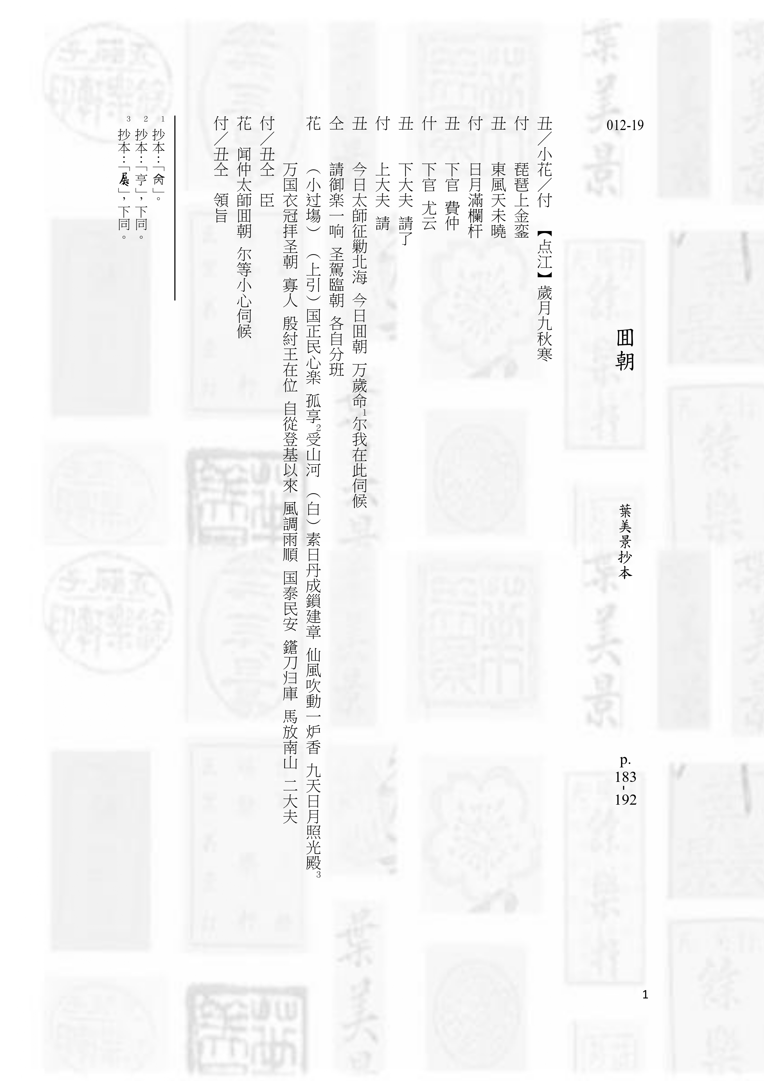 第12冊括19齣北管戲曲,此為第19齣〈包回朝〉。左圖為第一年計畫所進行的抄本原件掃描,右圖為今年進行的電腦打字排版整理稿件書影(部分)。