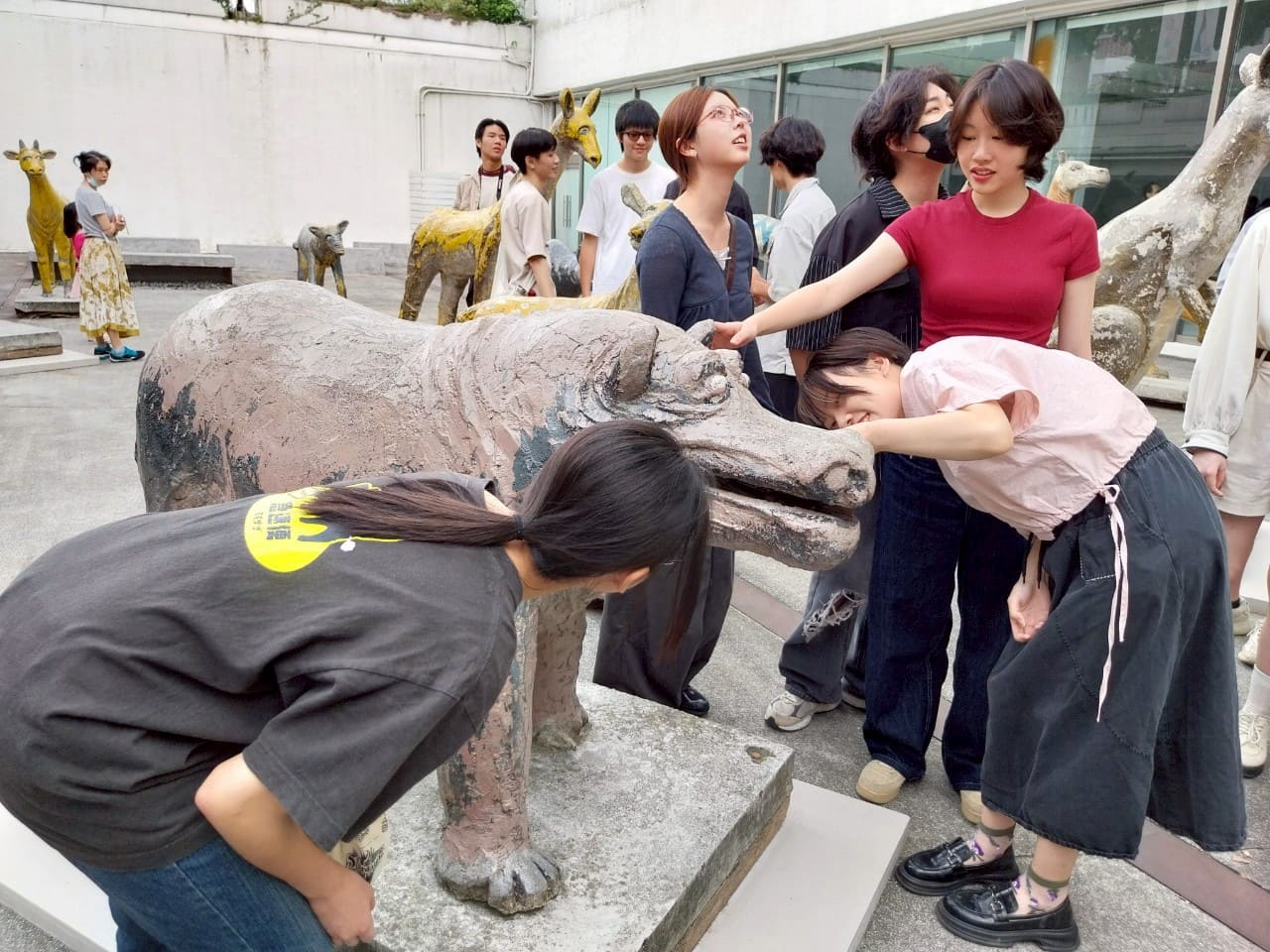 圖2. 動畫系同學用新鮮、好奇的眼光,與邱承宏作品《水泥動物園》互動。