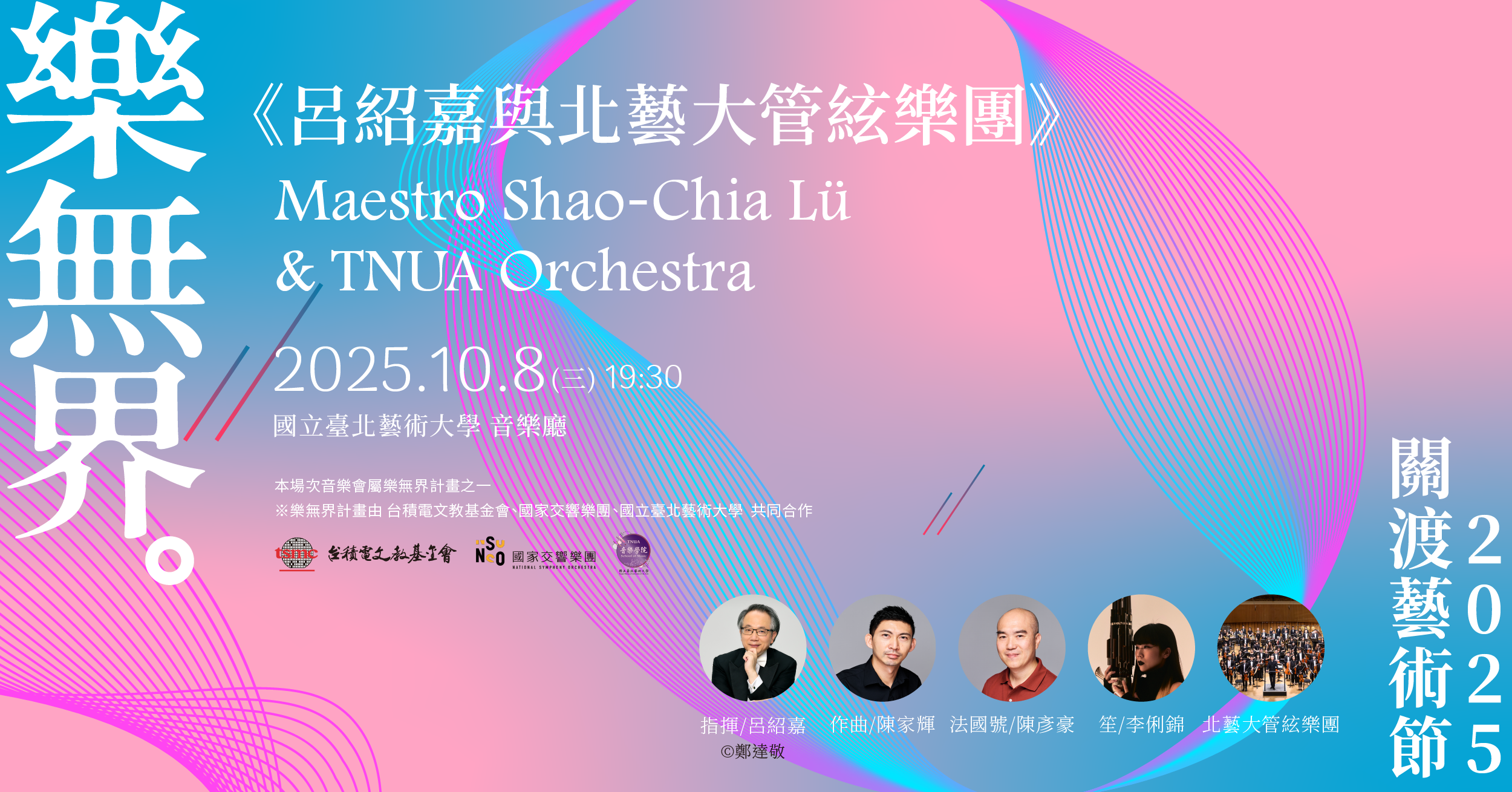 音樂會由北藝大名譽博士及特聘講座教授呂紹嘉攜手北藝大管絃樂團,帶來一場橫跨當代創新與古典經典的精彩演出。開場為作曲家陳家輝教授的全新創作《複製體 IV》,融合電子音樂思維與多層次的音響結構,由笙演奏家李俐錦擔綱演出,開拓耳目一新的聲音維度。此作世界首演,將展現臺灣當代創作的前瞻視野與獨特語彙。
