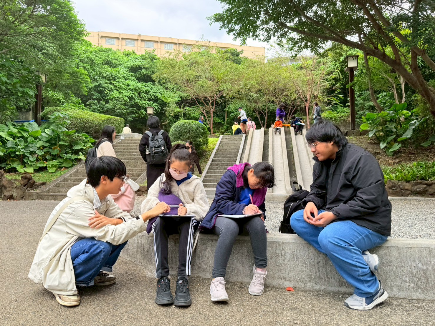 課程設計由「時間、空間、孤獨、夢」四大文學議題出發,引導大學生進行田野調查、影像紀錄與文學書寫。這不僅是一門寫作課,更是一場專業轉譯的練習——學生必須將自身的藝術專長(如電影攝影、美術創作、新媒體藝術)與北投意象結合。透過實際走訪普濟寺、新北投車站與北投公園,甚至在百年歷史的磨石子溜滑梯旁進行創作。大學生們將身體經驗轉化為文字與影像,讓原本「陌生」的北投,在創意寫作的引導下,重新長成一頁頁充滿青春氣息與土地情感的作品。